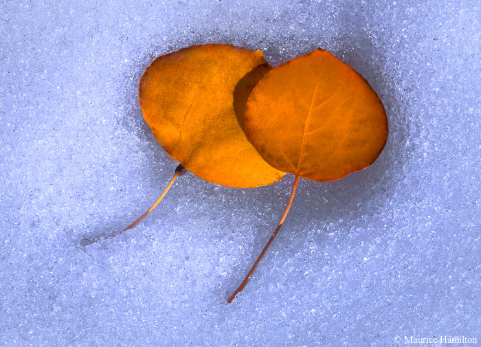 Aspen Leaves in Snow, Eastern Sierras
